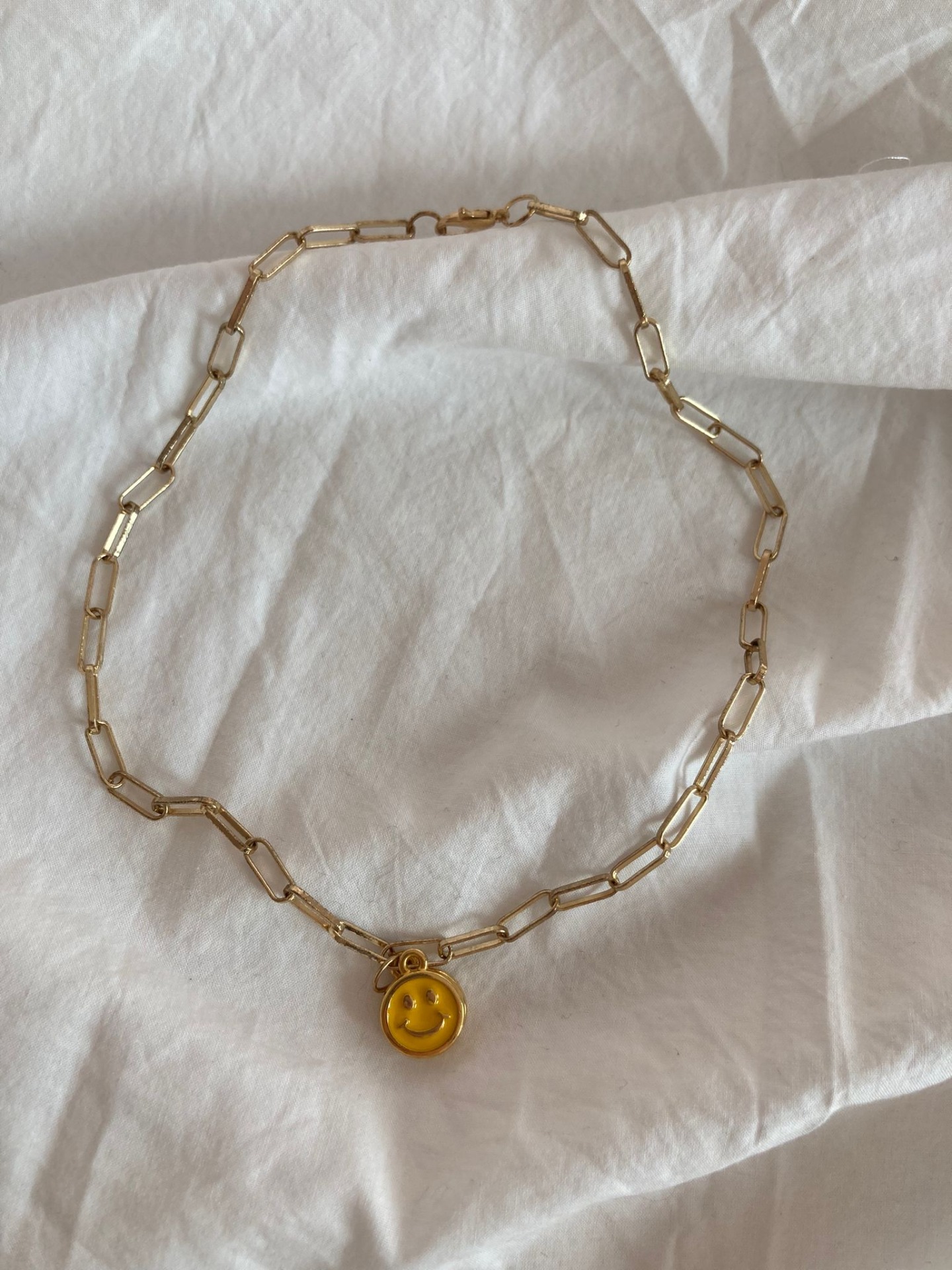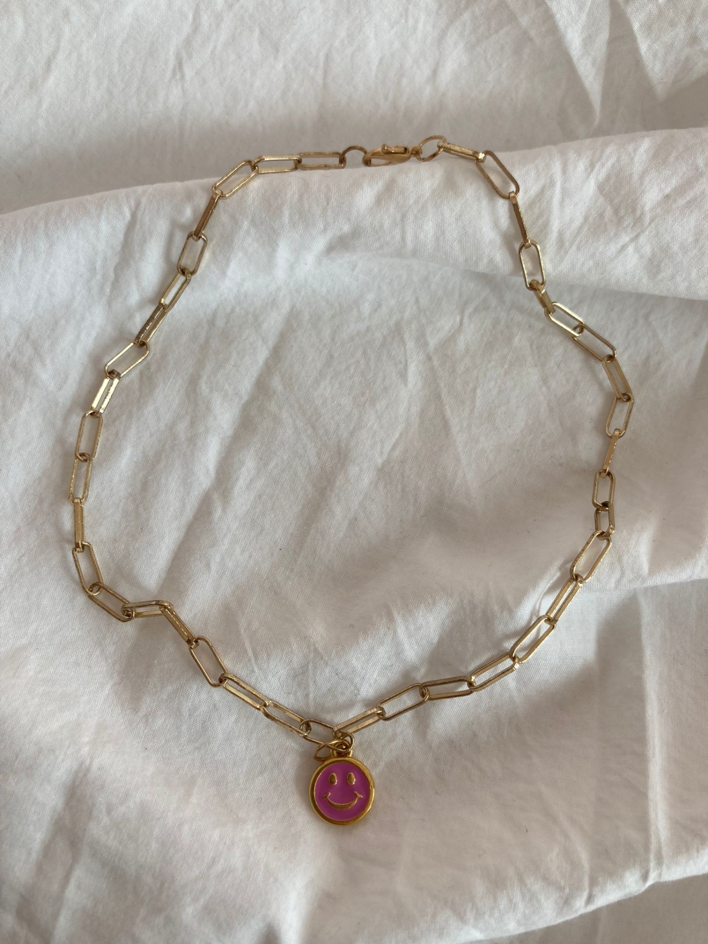 Leuke slotjes ketting. Gele of roze smiley bedel.
